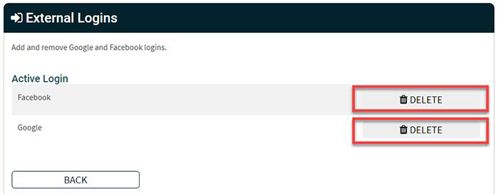 - Select the Social Medial Login that you wish to delete.